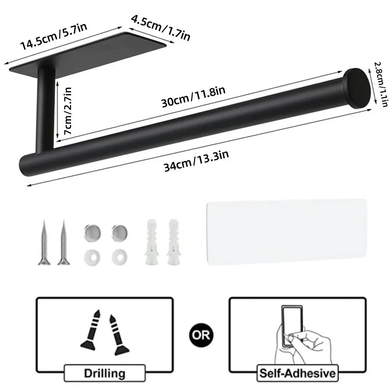 Maximize your kitchen space with this Punch-Free Paper Towel Holder, perfect for neatly storing paper towels, plastic wrap, aluminum foil, or kitchen tissues. Designed for easy installation without drilling, this under-cabinet or wall-mounted holder is both practical and space-saving.