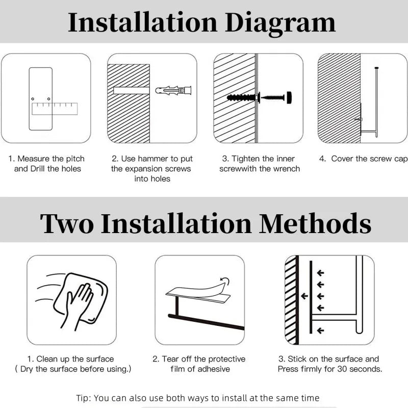 Punch-Free Installation: No drilling or tools needed – adhesive backing for quick setup